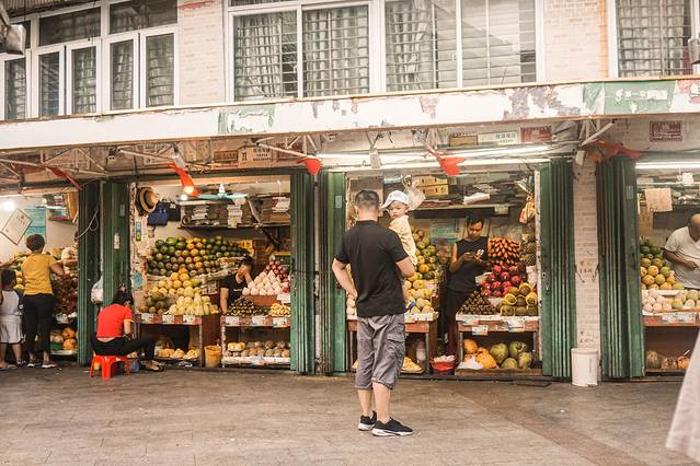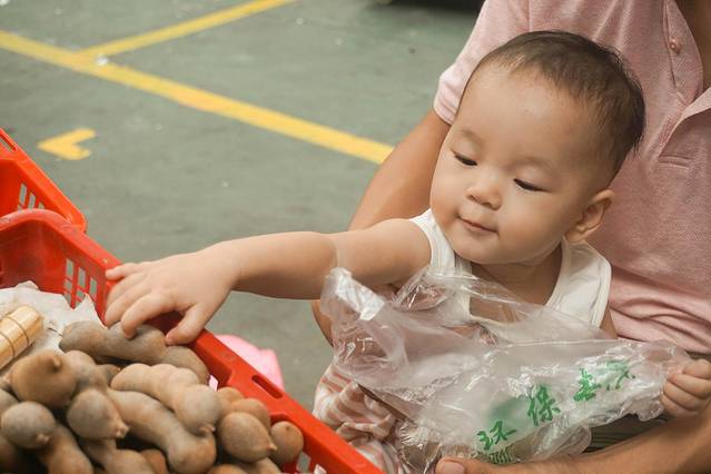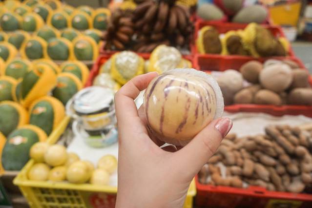 市场里除了售卖这些海鲜干货以外,当然还有水果啦!一个个小摊位上摆满了各种各样的水果。远远看过去,像是跳跃着五颜六色那样。连小朋友都按耐不住想要吃水果的心。