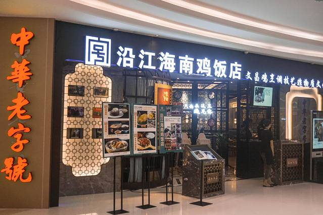 在广州的时候,我经常会吃海南鸡饭,这一次来到海南,真的要尝试一下正宗的海南鸡饭,这不,我选择了位于三亚蓝海购物广场里的中华老字号“沿江海南鸡饭店”