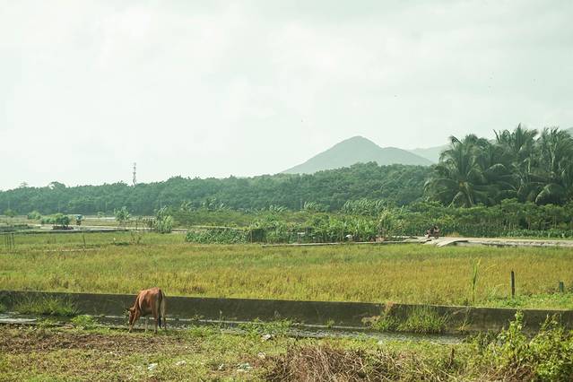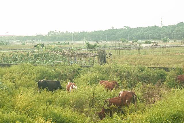 风吹草低见牛羊,在这里实现了。印象中三亚是蓝色的,而今天三亚是绿色的,还带着浓浓的乡村气息。而我们就像个孩子一般跟随着牛羊的脚步。
