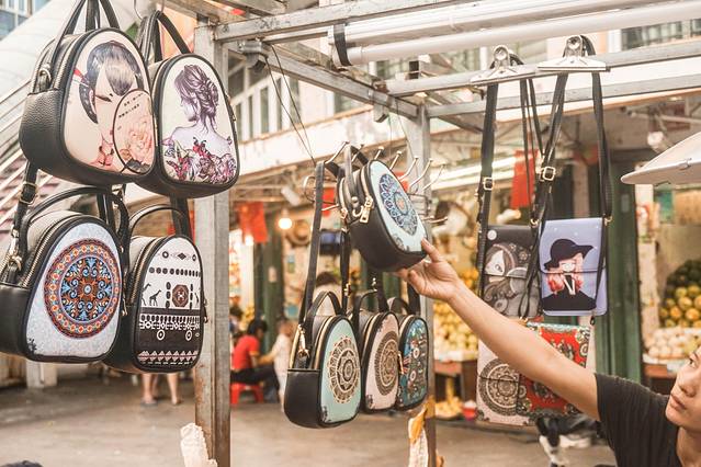还有张挂出来的包包,图案极具东南亚特色的。不妨去挑选一下,实在地道的价格可能会让你忍不住剁手。