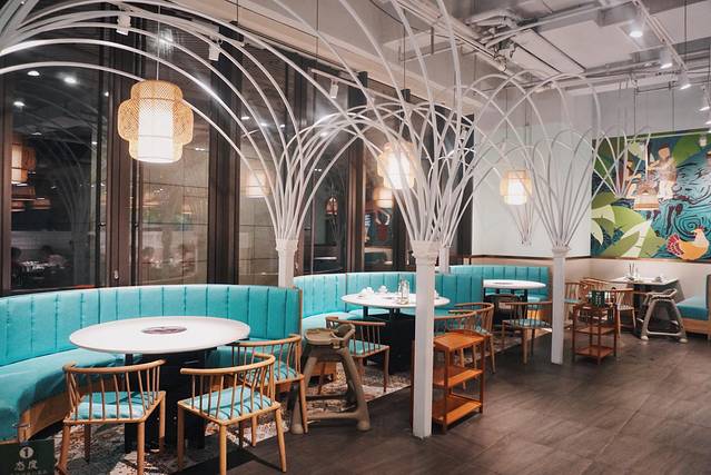 海棠湾 店的装修风格更加清新自然,蒂芙尼的蓝色卡座,彰显现代高级感,很适合和亲朋友相聚一起吃个椰子鸡。