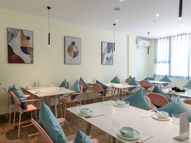 餐厅位于三亚湾机场路,毗邻三亚湾,虽然位于市区,但是餐厅所在的街道车流量并不大,餐厅旁边便是免费的停车场,非常的方便。走进餐厅,餐厅装修风格独具特色,一部分是传统的海南风情,一部分是现代化的清新风格。