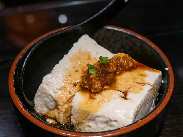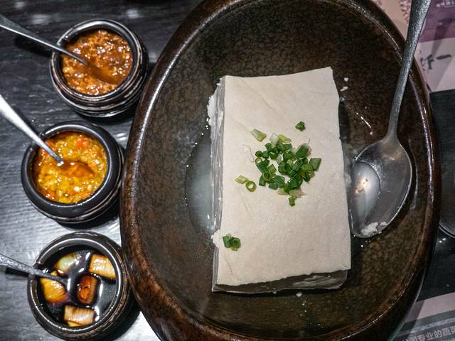 未到饭点,这家店就已经人山人海,可见这家餐厅的人气有多旺,餐厅的装修也非常有特色,大胆鲜艳的色调搭配古代的装饰装修,一眼就被吸引到,在这里收银处名为账房。餐厅必点的菜品便是这道手工豆腐,这里的豆腐都是经过许多工序制成的卤水豆腐,配上特色的佐料,未曾想到豆腐也能有这般的美味。