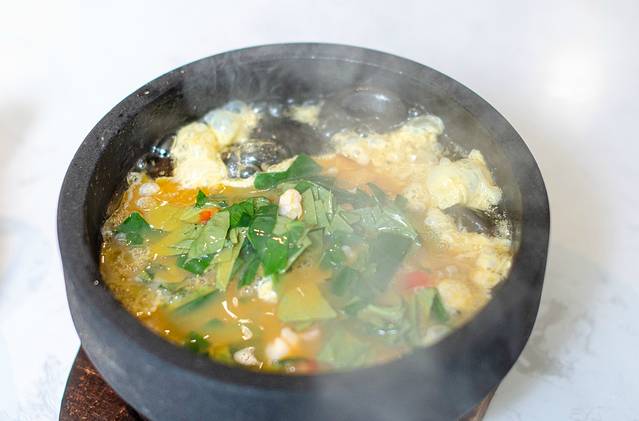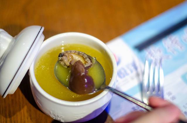 餐厅的面积非常的大,顾客主要分为三个区域,一个是户外的圆桌就餐区,一个是室内就餐区,一个是儿童游客区。因为带着宝宝的缘故,我们就没有选择户外的,而是在室内就餐,落座后服务员会给每人上一份佛跳墙,掀开盖子香味四溢,海参、鲍鱼材料也都是应有尽有,不得不赞叹这家菜品给力。