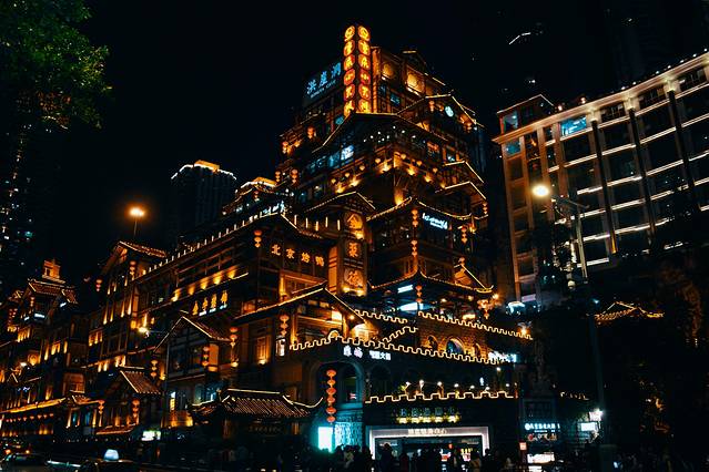 打卡攻略:建议傍晚时间去洪崖洞,可以看一看白天时候的样子,到洪崖洞里逛逛小吃街以及一些特色的商铺,时间一过,刚好晚上可以看洪崖洞的夜景。