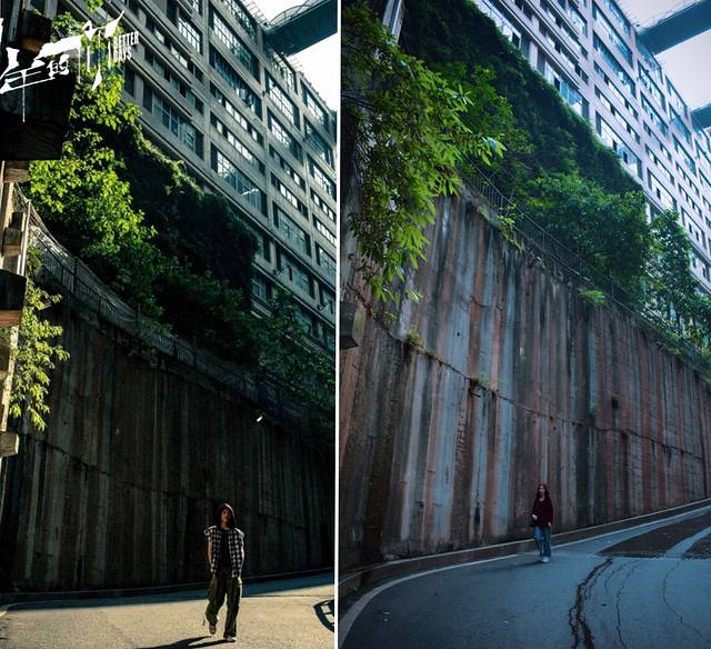 电影海报中小北独自走过的就是临江门的魁星楼停车场,底下是一个取景地,照片里右上角的天桥是另一个取景地。
