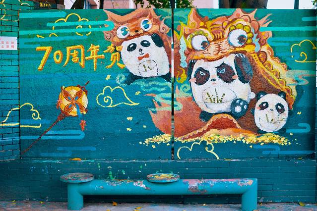 打卡攻略:整个涂鸦街其实很适合打卡拍照的地方就是川美门口右边的围墙上,有一排的涂鸦图案,色彩鲜艳,风格独特,很适合拍照和打卡。