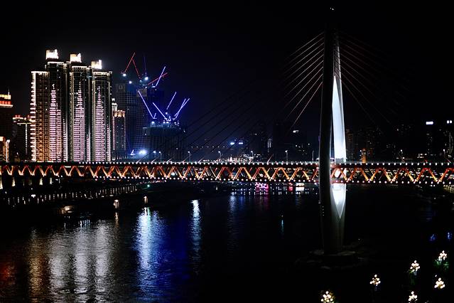 洪崖洞夜景主要有两个观赏地点:其一是到洪崖洞一楼底层,步行到对面的平台,仰角观赏洪崖洞的45度侧面夜景;其二就是在顶层到右侧上桥,步行出去到桥上中间位置观赏整个平面立体的洪崖洞夜景。