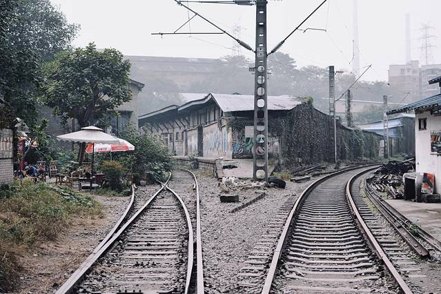 位于黄角坪的长江边,在大隐于市的铁路村,坐落着一排排遗落在繁华中的老家属区,锈铁,灰瓦,它们承载着记忆的颜色。