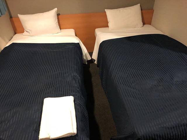五星级酒店,寸土寸金,五步不到就走到床面前,好小的床!
