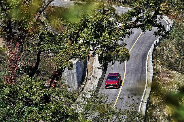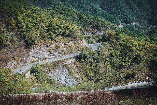 公路曲折蜿蜒,虽不说九曲回肠,但走在曲折狭窄的弯道上,也不得不打起十二分精神,一不小心就会和迎面而来的车辆来个亲密接触。