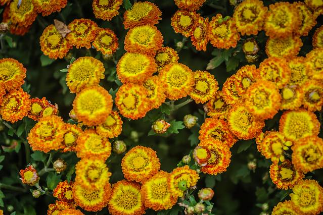 菊花才是晚秋的精灵,是秋韵的极致,是生命的延展。瞧,那五颜六色,迎风绽放的菊花,白的清新,黄的典雅,紫的凝重,红的奔放。含情默默地,绽成一簇簇,融成一团团,疑成一片片,汇成花的海洋,搅动海浪翩翩。