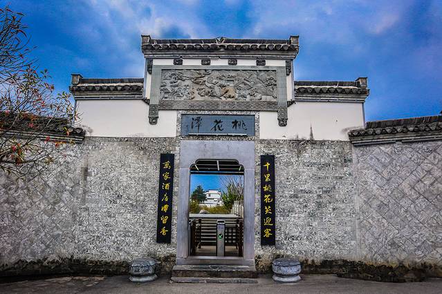 桃花潭,位于安徽省宣城市泾县以西42公里,地处青弋江上游,南临黄山、西接九华山,与太平湖紧紧相连。在这里,既有清新秀丽、苍峦叠翠的皖南风光,可观山川之灵气;又有保存完整、风格独特的古代建筑,可发思古之幽情。