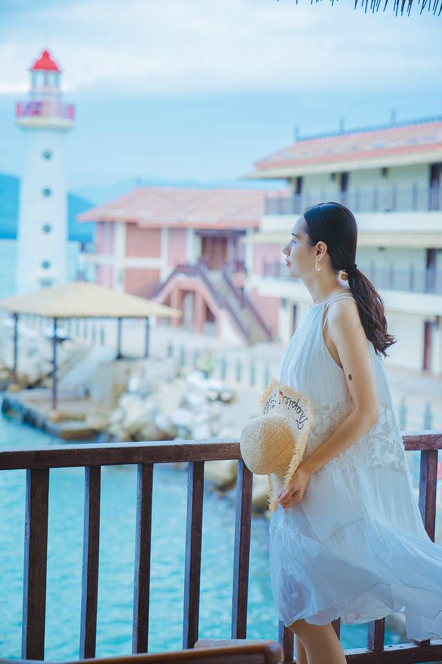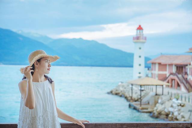 清晨醒来,推开落地窗,阳台正对着红白相间的 灯塔 ,清晨的海风带着凉意,吹起了白色的裙子,也吹醒了睡眼惺忪的我。