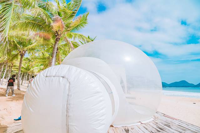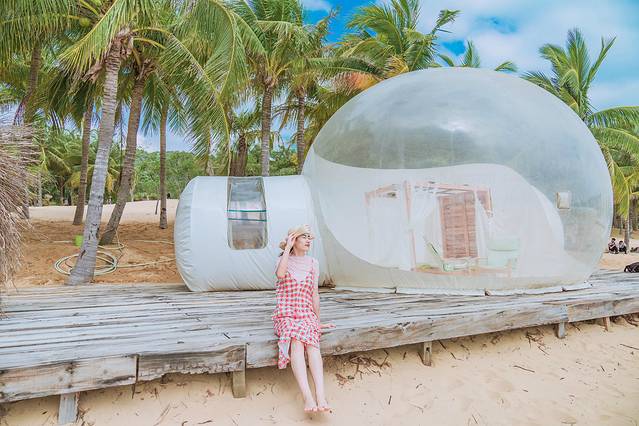 纯洁神圣的白色教堂,粉嫩冒泡的海边巴士,可坐可躺的椰林鸟巢,复古怀旧的老爷车,透明望海的泡泡球屋,海水冲刷后的褪色木船……