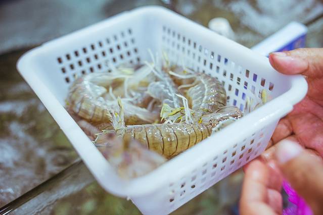 为了确保新鲜,特意到对面的店里看着老板挑选海鲜,海鲜很生猛,而且每种海鲜都有明码标价,让人安心许多。