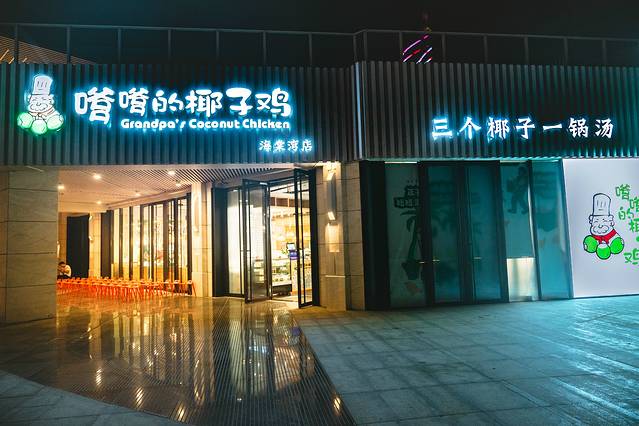 在做攻略时,就被一家高颜值的椰子鸡吸引了视线,名字也很特别:嗲嗲的椰子鸡,荣登 三亚 的必吃榜。正好我们晚上打算去逛逛 三亚 国际免税店,可以到 海棠湾 的分店就餐!