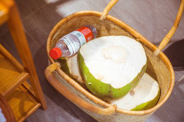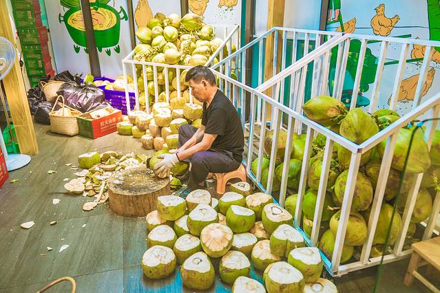 一进门,就看到满地满筐的椰子,听店员说,这里的椰子从摘下到上桌不超过八小时,果然是只有原产地才能实现的新鲜…
