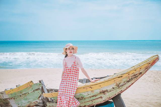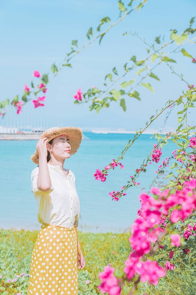 租上一辆小车,沿着海滨公路一直开,晴朗的天空下,玫红色的三角梅明媚耀眼,绵长的椰林树影中漏出大海的模样,摇下车窗,海风远远吹来,柔柔暖暖地拂在脸上,不禁让人嘴角轻扬。