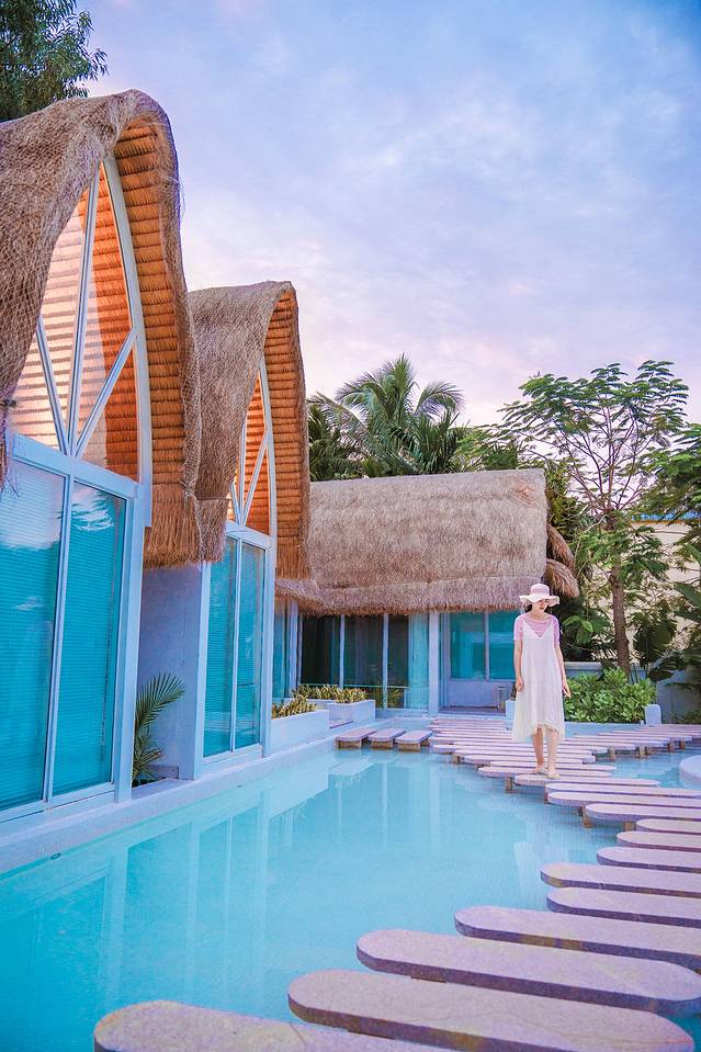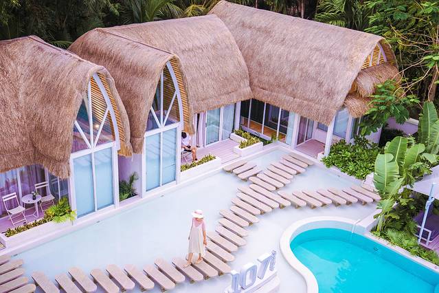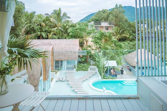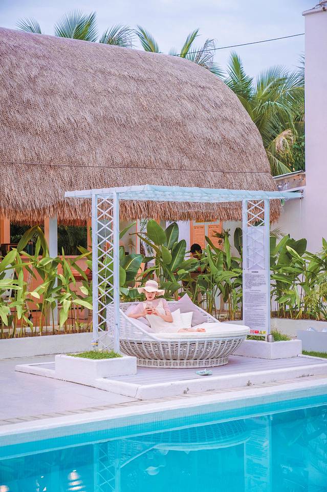 泳池、火烈鸟、茅草房,超级Ins风的民宿,很适合拍照,夜晚有音乐和吧台,很放松。