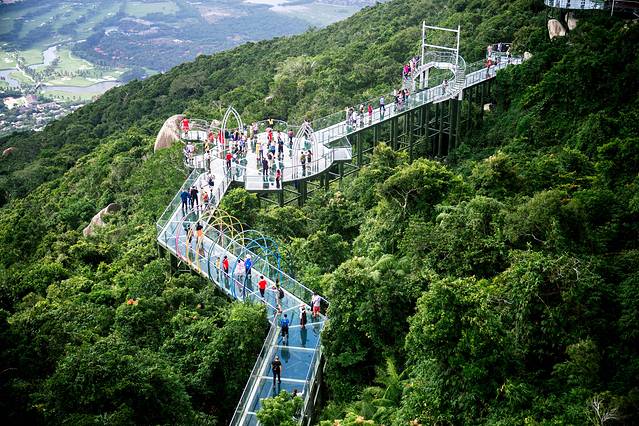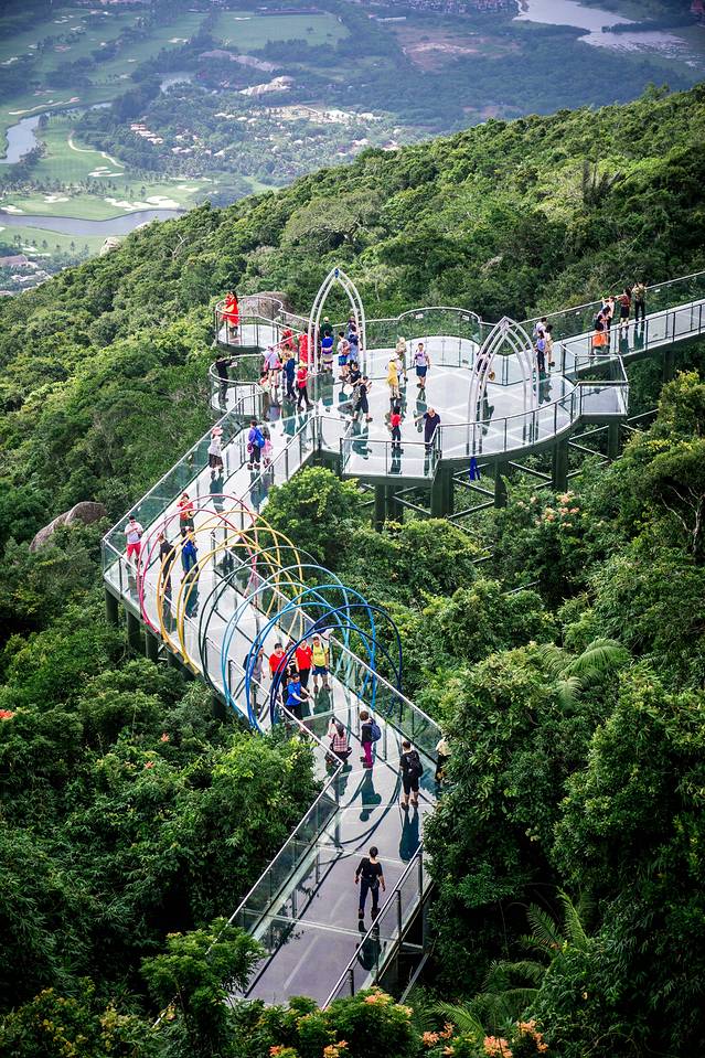 1⃣️ 亚龙湾 天堂森林公园:网上购买套票,需要比入园时间提前一小时,266元包括游览车+索桥+玻璃栈桥+非诚勿扰二试婚房。