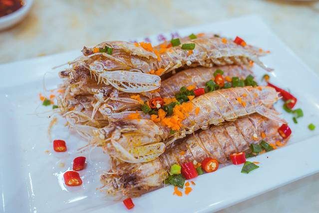 最先上桌的皮皮虾,虾肉紧实新鲜,椒盐带出海鲜的甜味,很入味但又不会太咸,也不油腻,口味适宜。