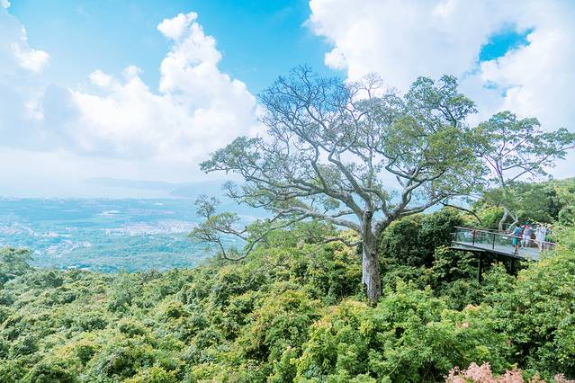 乘游览车上山,第一站是位于山下的兰花谷,一座鲤鱼环绕莲花的飞龙潭,一间兰花点缀的文心阁,雨后漫步森林的感觉总是自在,只是在 广州 看惯了各种池塘和公园,总是少了几分惊喜。