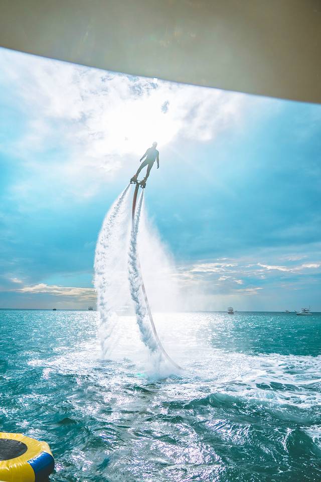 游艇上可以参与的海上项目不少,飞龙、魔毯、摩托艇、海上蹦床等等……
