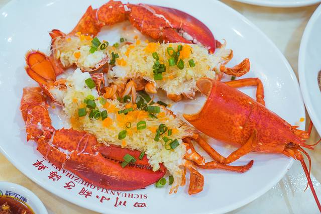 清蒸大龙虾,没有过多的调料,反而更能吃出食材的新鲜,龙虾钳都被夹裂了,吃起来很方便。