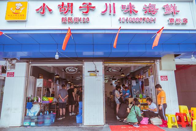 海鲜的第一顿,选择了几乎每个人都会去的第一市场,一番比较后最终决定去网上人气很旺的小胡子川味海鲜,这时候只能选择相信群众的眼光了。