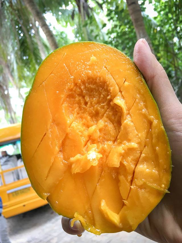 青皮凯特芒果,强烈推荐,一个就有半张脸大,甜度很高,而且完全没有纤维感,咬一口,芒果都有爆汁的感觉,真是熟的刚刚好,想起APP里介绍说果品都是树上熟,果园直发,看来此言不假。