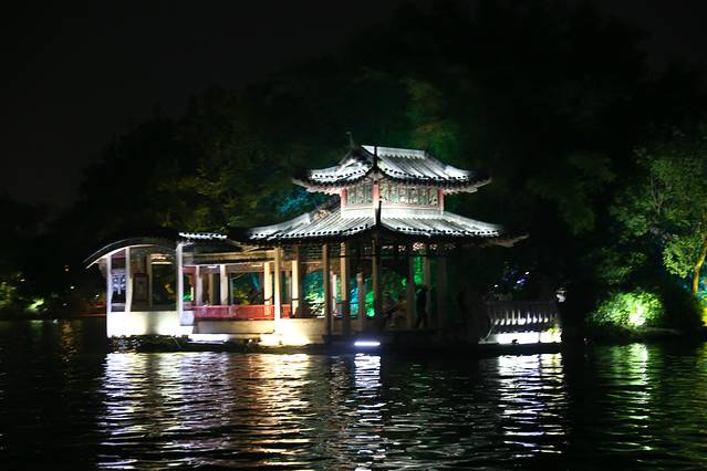 最引人注目的就是这对日月双塔,日塔为铜塔,位于湖中心,月塔为琉璃塔。两塔之间以湖底一条10米长的湖底隧道相连,号称世界第一铜塔。知音台码头是观看日月双塔的最佳地点,日月双塔在夜晚的灯光下比起白天真是漂亮了不少。