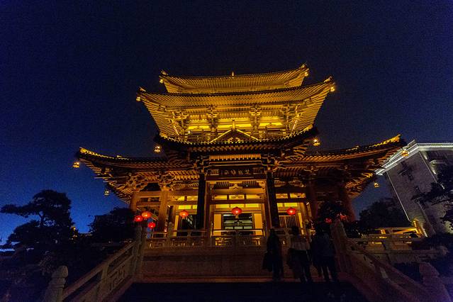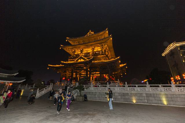 逍遥楼是可以免费前往观看的,夜里的逍遥楼灯光有一些昏暗,却挡不住游客打卡拍照的心,想要在逍遥楼前拍一张人少的场景照还是非常困难的。