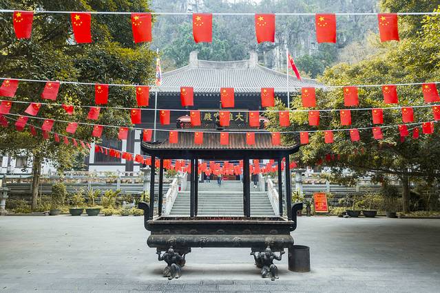在七星公园继续前行便会遇到一座寺院,整体建筑偏黑色系。这是一处始建于唐代的建筑,整体建筑风格有非常浓厚的唐代建筑特色。在经历了岁月的磨砺和战火的摧残,这些建筑也已经过多次修葺,好在这里还保持着香火气息,每天过来敬香许愿的人不在少数。