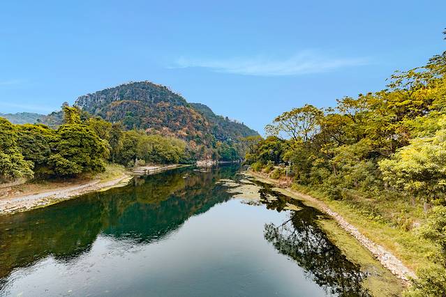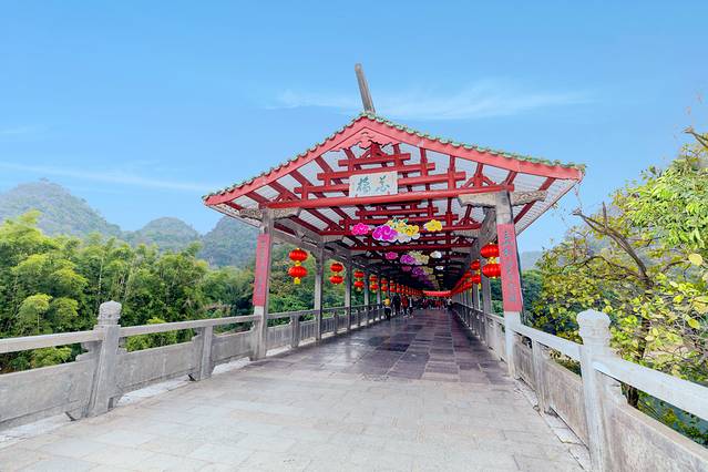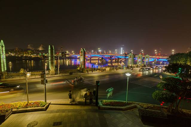 进入七星景区就会遇见花桥,缓缓流过的小东江上一座形如长亭的石桥横卧在江上,远看恰似一条绚丽的彩带,这就是著名的花桥,这座花桥历史悠久,在桂林也是一个非常著名的地标。