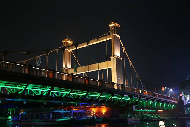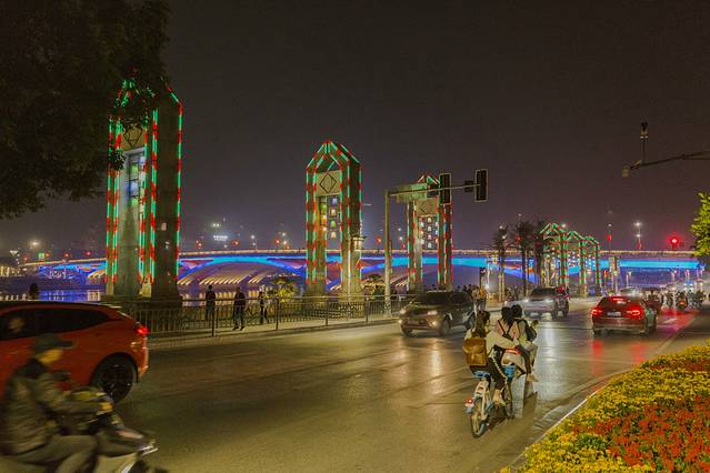 桥,在不同的时段都会有不同的风光。相比之下我更喜欢夜色中的桥,因为只有这样的环境下桥才能显示出不一样的身姿和秀美,一座桥被妆点的灯光璀璨,才能吸引所有人的目光。