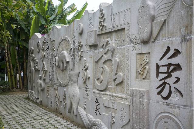 沿着象鼻山的岸边一直向前走,就会看到一面这样的墙体,这面墙的两面都是关于大象的浮雕和介绍,记录了从远古至今的象的演变和各种象的书法,对于不太了解象知识的人倒是一种很好的分享。