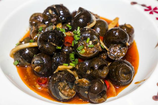 田螺酿依旧是一道必点美味,很久以前在桂林第一次吃过之后就再也忘不掉的味道。清澈的漓江水里多产田螺,于是有心人就将螺肉和多种食材一起酿到了田螺之中,汁水和肉质都是满满的香味。