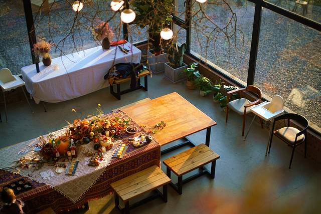 厨房里管家大姐们正在紧张的忙碌着,不知道是什么的香气一直飘散到四楼,直到晚宴开席才揭晓。正赶上11月8日是立冬,特色的“火盆锅”上桌,那让人欲罢不能的香气原来是各类干菜、豆腐和五花肉在腾腾热气中尽情释放出来的。待腼腆朴实的管家进行了开锅仪式,大快朵颐才能满足寒凉日子里渴望温暖的肠胃。大家围炉而坐,就仿佛从不同的地方赶来,在玻璃房子里相遇,从陌生到熟识,从相遇到别离,也不过三天两日而已。