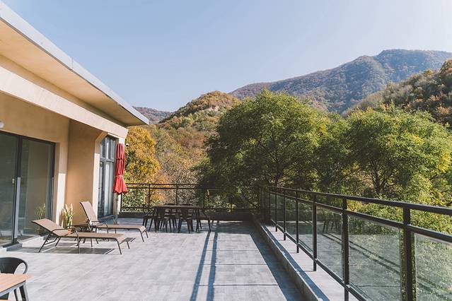 房间看出去便是远山和秋叶,露台上的风景正好,而烧足了的地暖,也令初冬的山里感觉格外温暖。