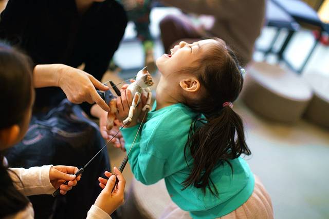 早餐过后稍作休整,由儿童偶戏艺术家林平「小真」女士带来的高技术微型杆木偶剧演出《回家路上》就开始啦,孩子们和可爱的木偶角色们度过了互动且诗意的50分钟。