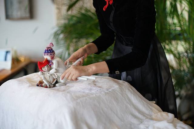 午睡方醒,包包她们已经布置好了下午的手作台,还准备了手绣的枫叶胸针给大家做秋日主题的伴手礼,延续了女塾的活动,一向追求品质精致却又与生活息息相关的风格。而孩子们则仰着小脑袋,迫不及待的准备穿好衣服扑向门外的大自然,捡拾叶子,挖沙搬土。