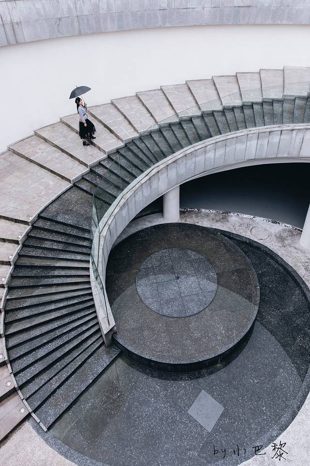 建筑本身也很值得一提,整个美术馆通过一个旋转楼梯下沉进入,外出看是一个圆弧形的大馆。