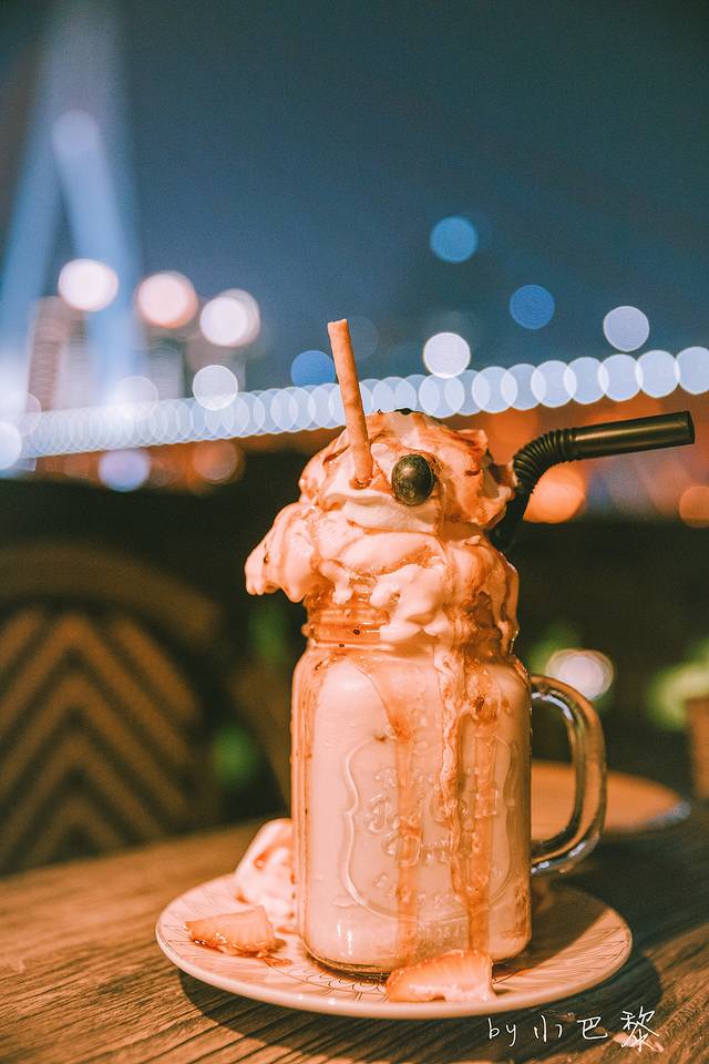 在这里找了一家观景不错的店,一边吃甜品,一边观夜景,才是正确的打开方式。