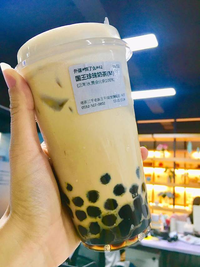 吃茶三千,杯杯新鲜!很喜欢他们的广告语:愿用一杯茶,许你一份冬日幸福!这句话也让我很想问一句,那春夏秋该怎么办?哈哈哈哈哈哈!他们家我首推国王珍珠奶茶,珍珠是真的Q,伙伴都说嚼到下巴酸的那种!可盘!