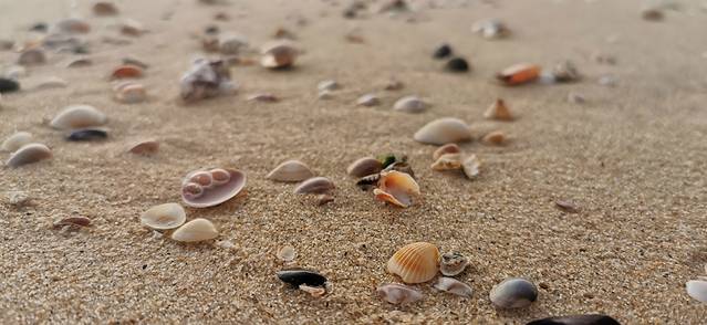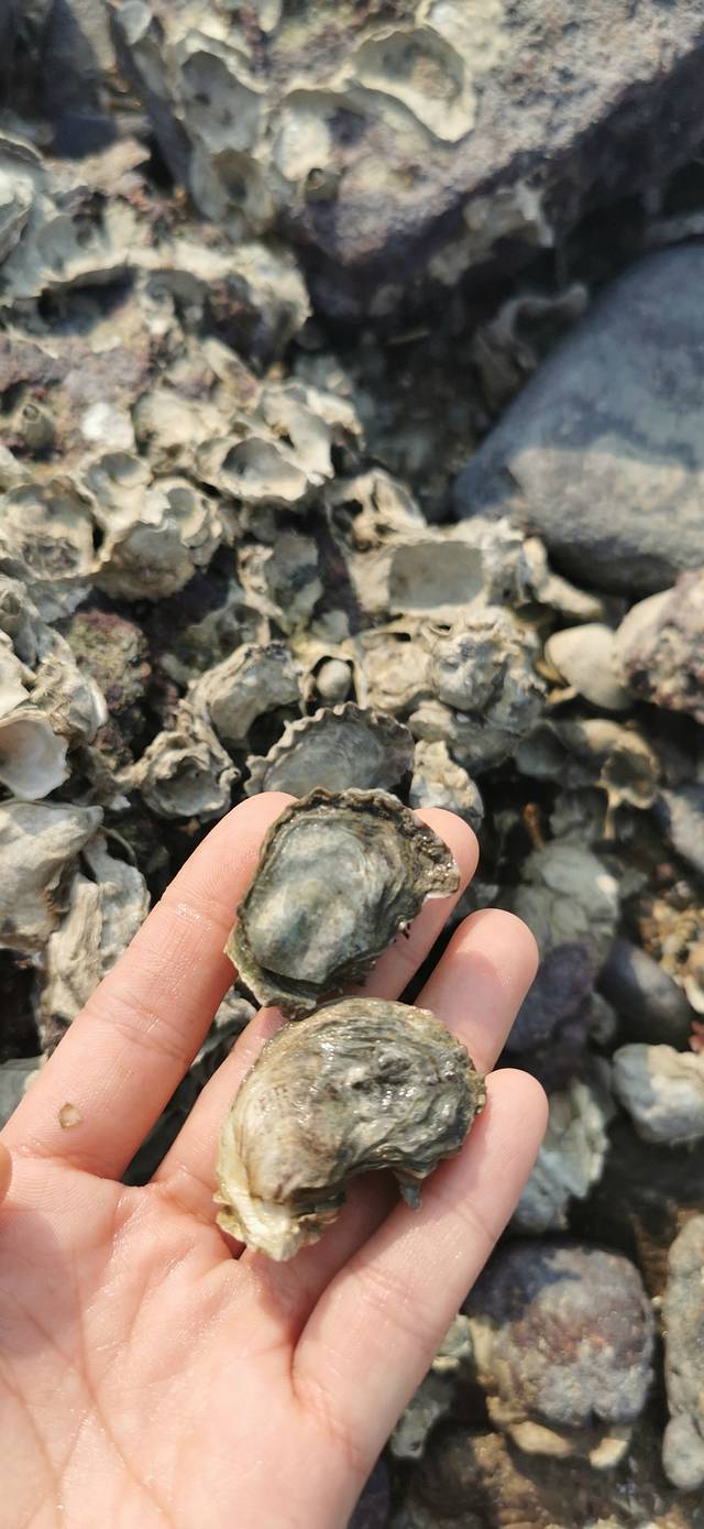 滩涂的礁石上,有很多牡蛎,尽管个头不大,却都是活的呦。涨潮的时候,它们就会欢快的打开壳啦。