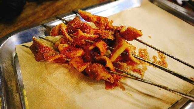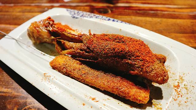 外皮烤制到焦黄,口感酥脆内在鲜嫩,撒上辣椒面,咸辣可口,自我感觉在口感方面我更加喜欢烤羊背,依然值得推荐。