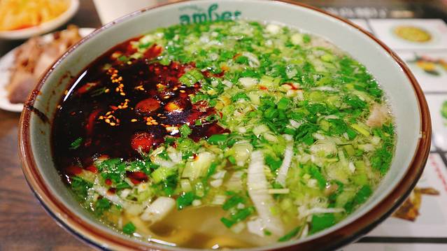 价格比别家都贵,但是汤头确实好喝,清汤牛肉香味扑鼻,红油辣子香而不呛辣,我们点的是薄宽,既能吸溜着吃又有筋道, 山西 人表示get到这个宽度了