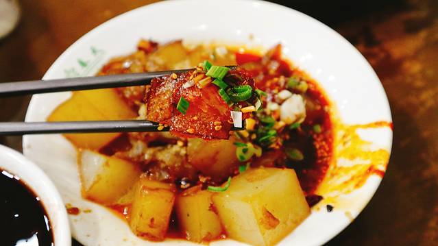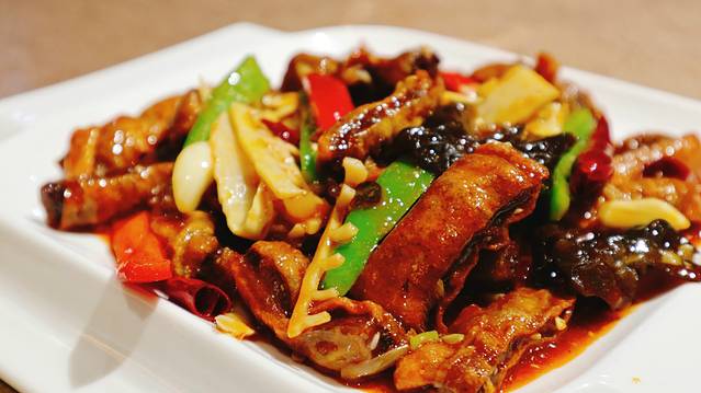 当年溥仪的御膳菜肴,羊肉选用的都是偏瘦的 靖远 羊羔肉,可以说是羊肉中的上上品,还未入口,羊肉浓郁的香气扑鼻而来,入口即是鲜嫩,由于是大火焖制而成,咸香味美的汤汁融入肉中,体会大口吃肉的 西北 风情居然会有极致高潮的满足感,强烈推荐。