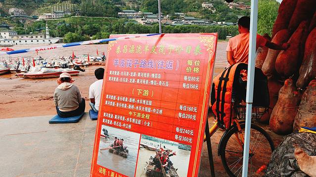 上图是在 黄河 索道下拍摄的,沿线能体验羊皮筏子的地方挺多,我看到3个,价格都一样,我们是在 水车园坐的。